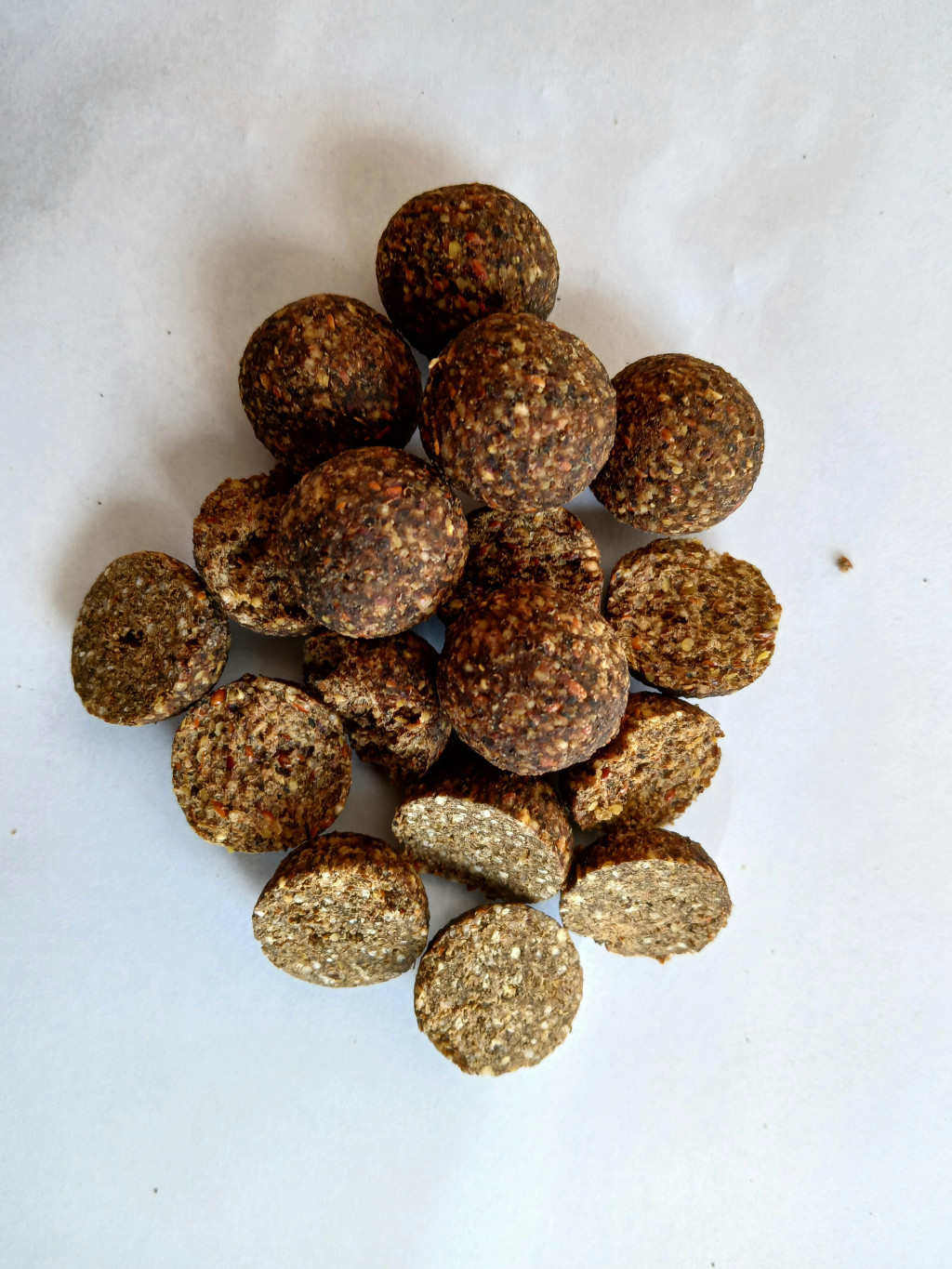 - 5 féle őrölt mag biztosítja a megfelelő emészthetőségét ennek a bojlinak, mivel csak olyan magokat használtunk fel, ami nem telíti el a hal emésztőszervét! Magas rosttartalom jellemzi!